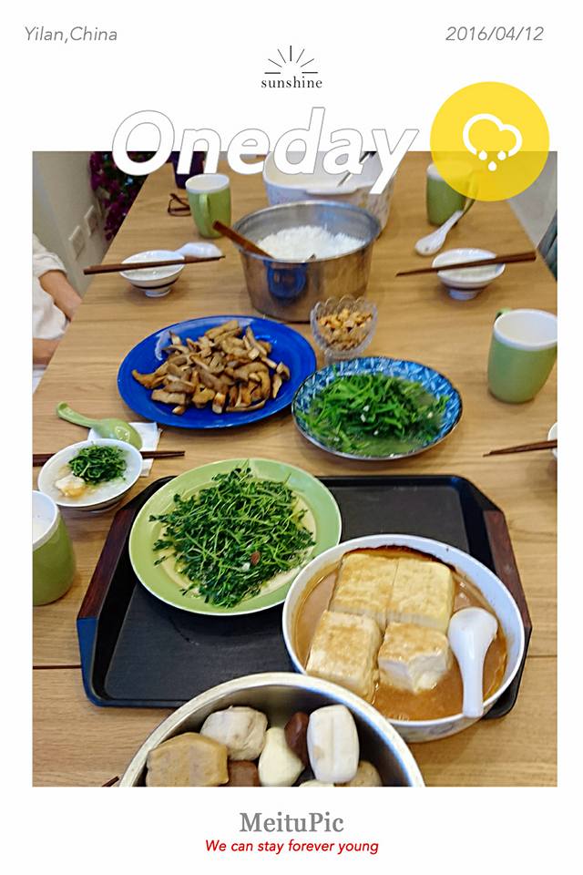 今天課程結束,中午照例訂了一桌素食到府。用這色香味俱全的菜色,款待遠地來的學員。這是宜蘭人的純樸熱情。