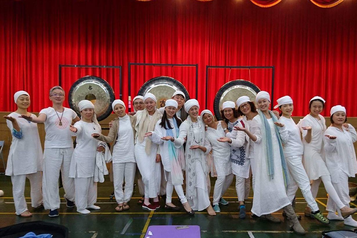銅鑼浴需要現場的維安人員,於是周四在瑜珈班找人,有七個學員加入守夜;還有報到組、場地善後組…..尤其要特別感謝 Winni Abnashjot Kaur老師,處理了一百多人的報名、匯款,奇蹟唱頌開始,她依然在舞台下穿梭忙碌,回覆找不到場地的學員訊息,以及協助場地淨化,低調而默默地做著。