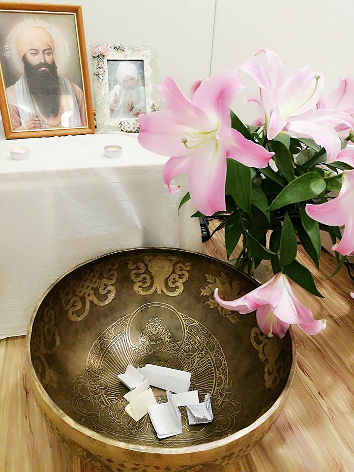 下午,趕上了新月祈願的時間。我們做了<獲得繁榮的冥想>,還把祈願的小紙條,放進十公斤的大缽裡敲缽,願我們的祈禱,被宇宙聽見。