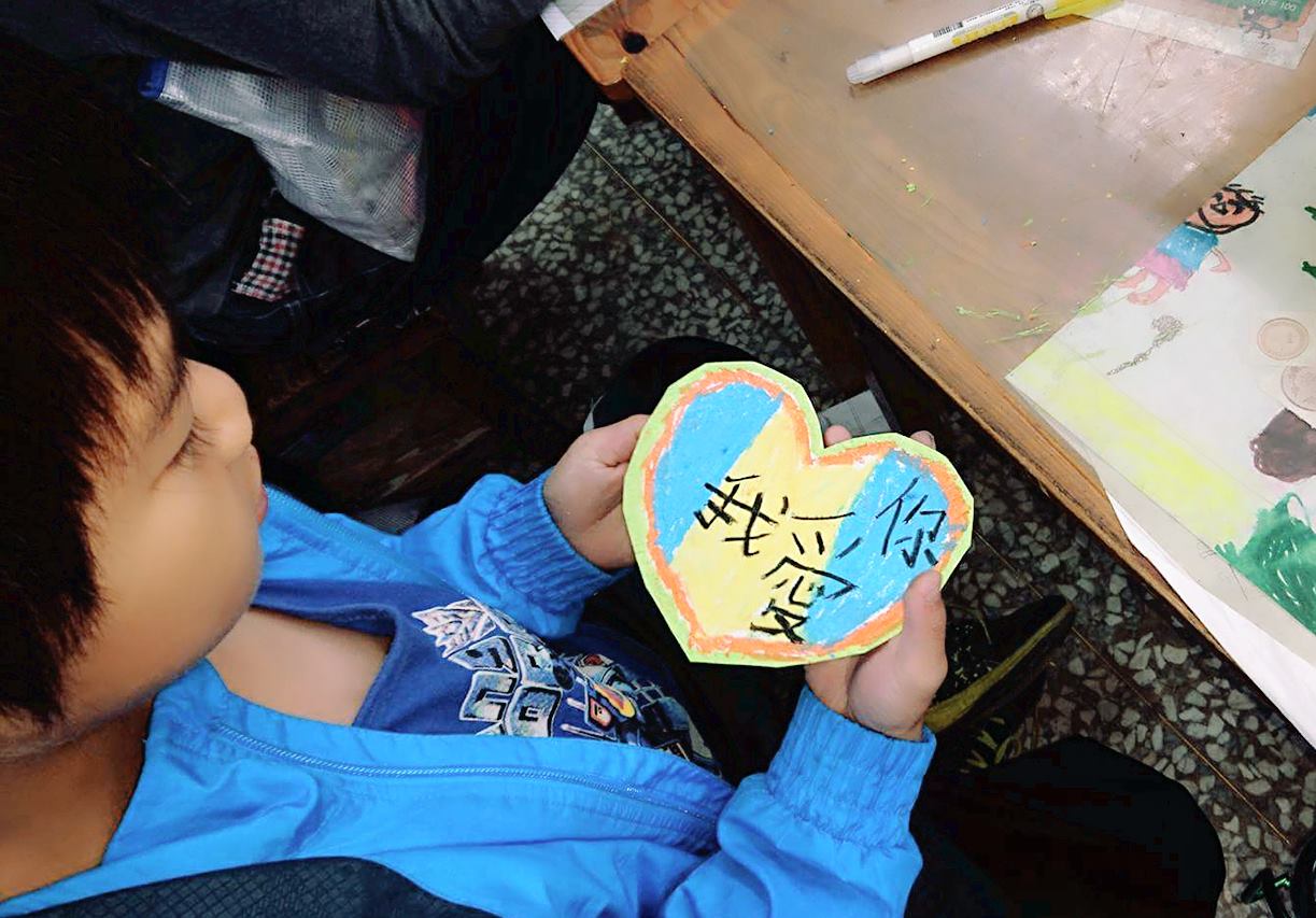 帶了蠟筆與紙,讓孩子畫下了要「獻給媽媽的心」。雖然故事時間連同繪畫,不到半小時,但孩子們都很投入。愛,當我們擁有時,覺得一切理所當然,也會任性的不懂珍惜。但如果思考假使失去這份愛,是不是我們會比較懂得珍惜?也願意修正自己。