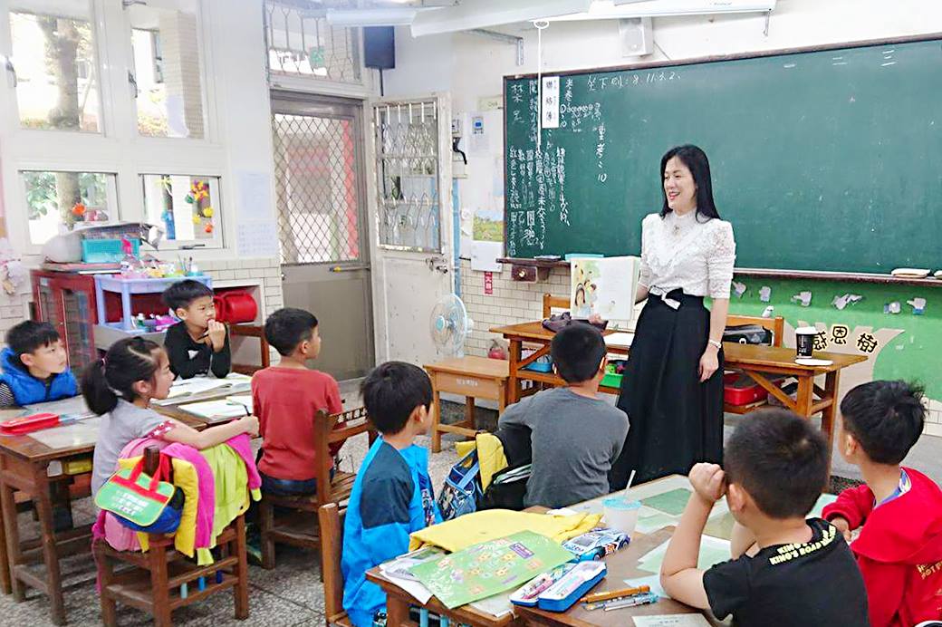 今早,帶了一本我收藏十多年的繪本<媽媽心,媽媽樹>,去兒子的學校說故事。