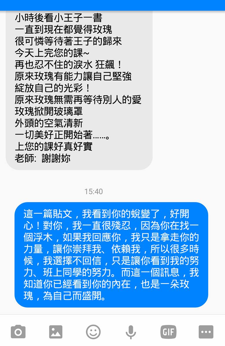 雖然有時,也會覺得自己是不是太冷血,但我堅持我對她的信任,相信每個努力往前走的人,碰撞之後,必會找到自己的體悟。