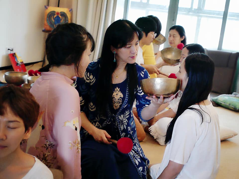 「關注颂钵很多年,一直沒有机缘去學習。直到2018年,偶然在朋友介绍下,看到楊老師的頌鉢課宣。才知道有些老師光只看照片,也是會讓人怦然心動的。