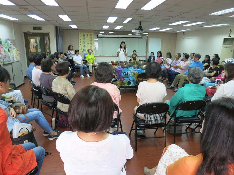 5月,在康泰基金會的公益講座,帶著8位頌缽師,在講座裡服務幾十個來賓,我請主辦方將兩位身體狀況較差的,請出來由我處理;因為講座裡可以個別服務的時間不長,我必須立刻掌握她們的問題。