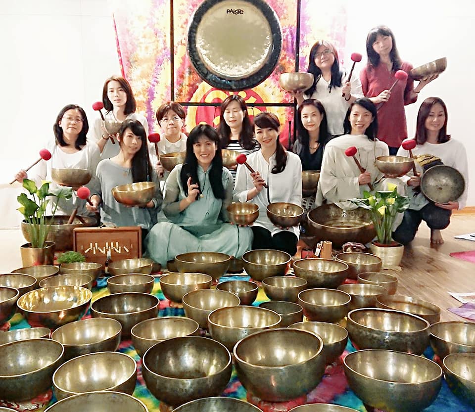 遇到一整班的修行者學員,上課的心法,就可以講得好深,因而三天的頌缽課,成了以缽入道的動中禪修,既要有療癒師的慈悲,也要能對執行音療過程中,所有升起的連結、覺受,甚至是音療師必經的沾附課題,生起空觀,才能真正在療癒與被療癒的顯相裡剝離,回到那無生無滅的寧靜。 難得的把上課的學員照片放上來,這大半年都沒放過工作坊的學員照。以此,記錄一段特殊的「仙姑奇緣」,願我們在音療的道上,並肩向前。