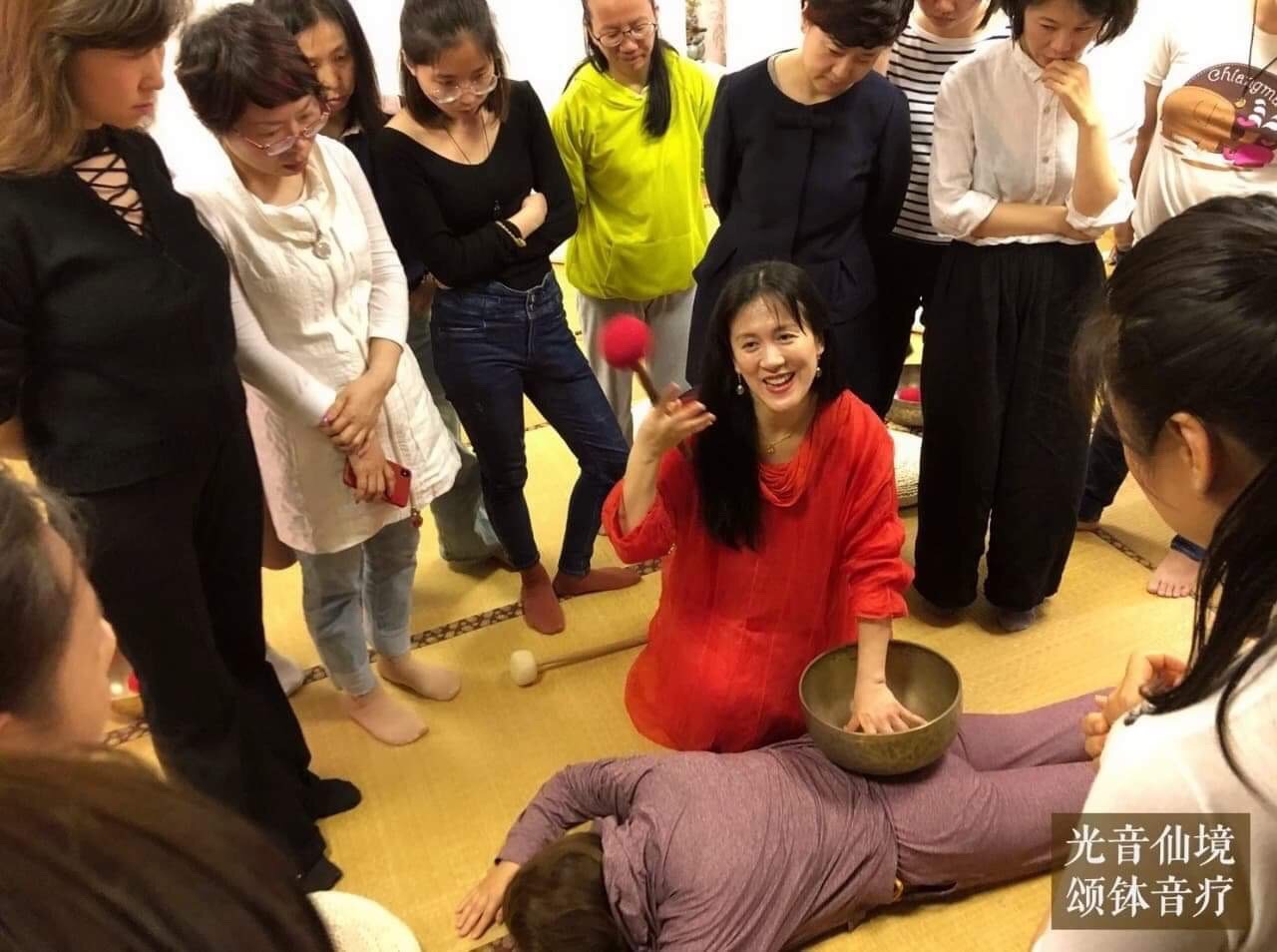 說真的,我不知如何三言兩語的,去教導這個部分。總之,是敲了很多很多頌缽個案、沒日沒夜的敲缽,像武俠小說裡,那種在一門武功深入又深入的武癡;慢慢地,發現敲缽,根本就是用音波在把脈,頌缽的震動,總是呈現出個案的身心狀態與生活樣貌。